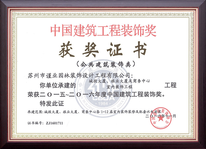 江蘇省建筑裝飾優(yōu)秀企業(yè)