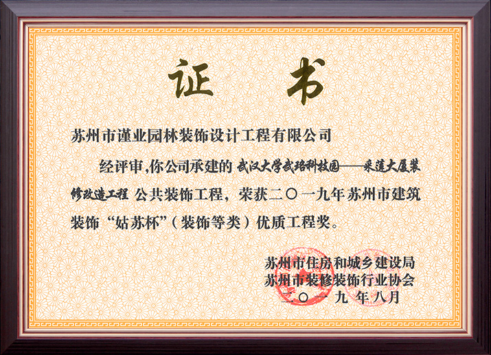 蘇州市建筑裝飾優(yōu)秀企業(yè)