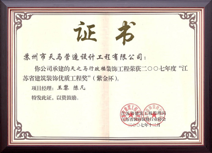 江蘇省建筑裝飾優(yōu)秀企業(yè)